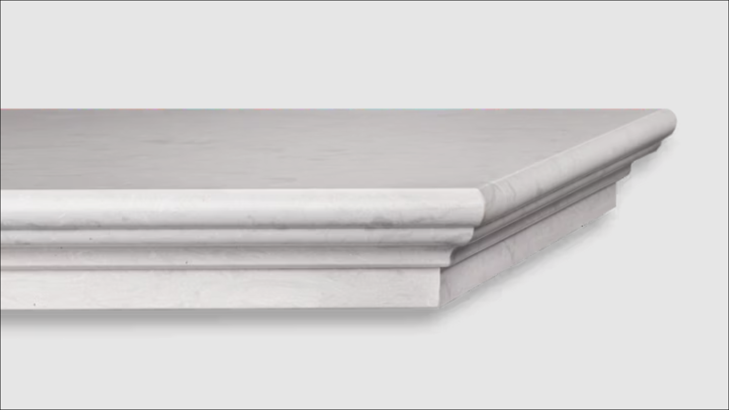 Combines a reverse ogee edge stacked on top of a straight drop modernizing the traditional edge.